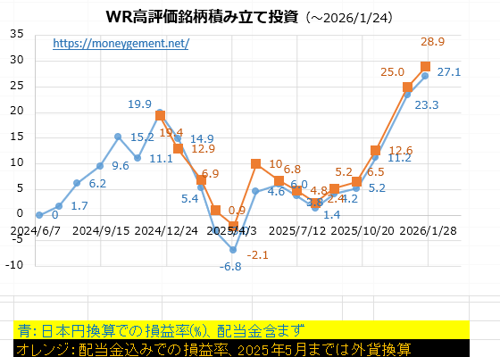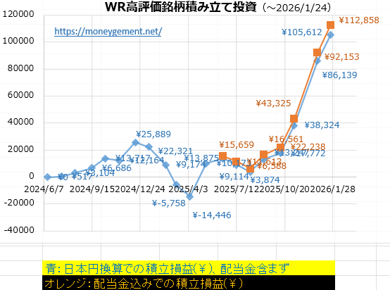 さてさて現在、米国株でも日本株でも何なら金/銀/銅 価格でも絶好調だと思いますが、WR高評価積み立て投資も絶好調です!!